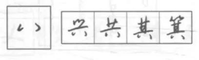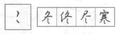 侧钩点下连上挑点,再向右连撇点和侧钩点。上下左右气势连贯。