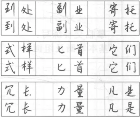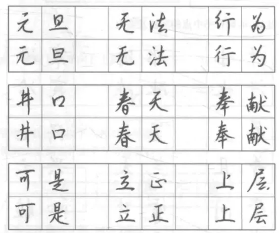 与正楷作比较,明确行书中竖的形态。
