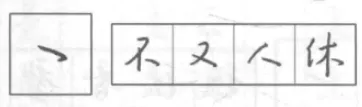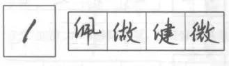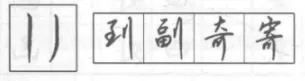 轻按后向下撇出,至末端有一个回锋向右上,整体带微弧。用于单人旁、双人旁首笔。