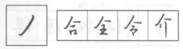 与正楷作比较,明确行书撇的形态。