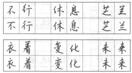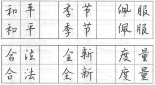 与正楷作比较,明确行书中横的形态。