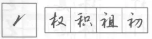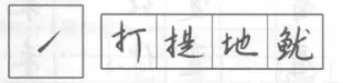 是短撇与提的连写,在“木、禾、示、衣”字旁中应用。书写时转笔向右上提出要明快有力。